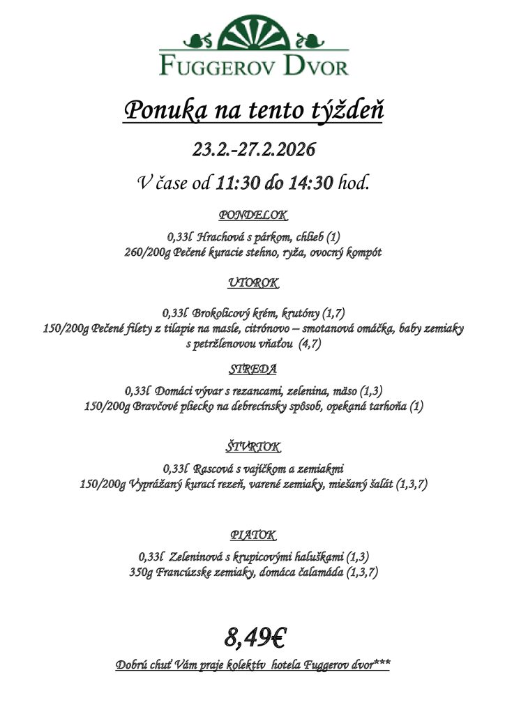 Denné menu 23.2-27.2.2026 Nezaradené 23. februára 2026 / Komentáre vypnuté na Denné menu 23.2-27.2.2026