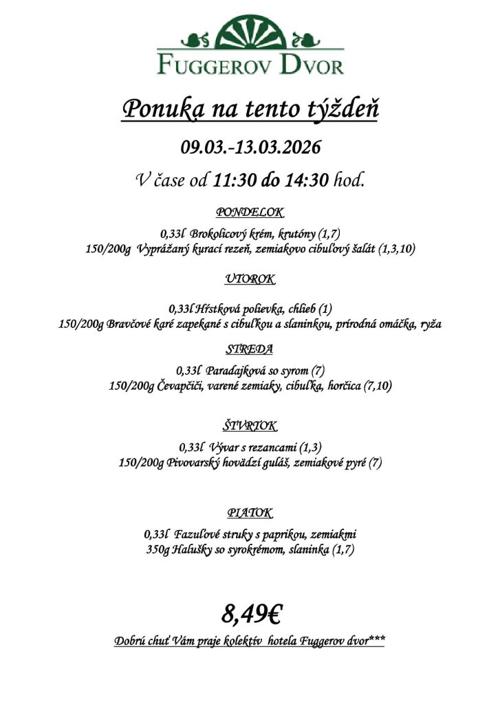 Denné menu 09.03.-13.03.2026 Nezaradené, Oznamy 2. marca 2026 / Komentáre vypnuté na Denné menu 09.03.-13.03.2026