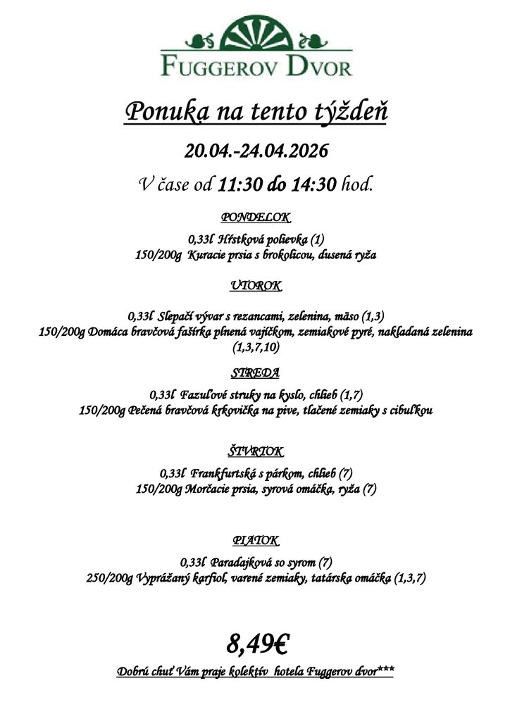 Denné menu 20.4-24.4.2026 Denné menu 20. apríla 2026 / Komentáre vypnuté na Denné menu 20.4-24.4.2026